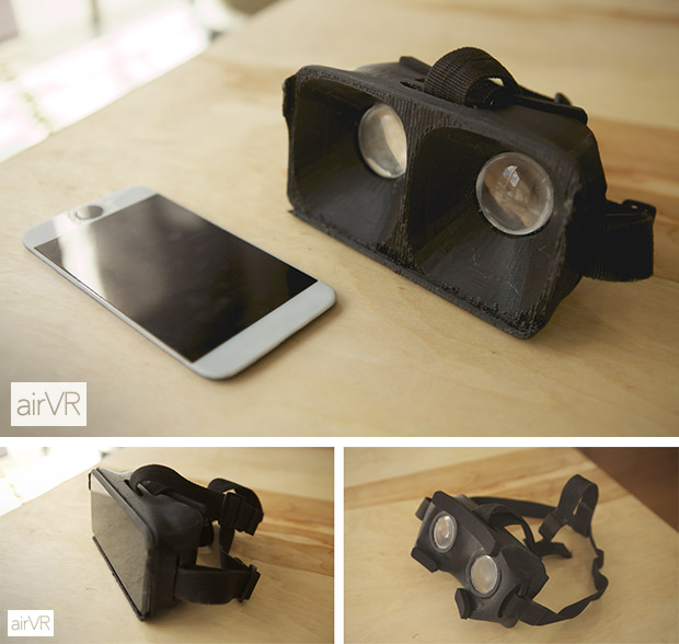 پروژهای به نام AirVR گجتی را معرفی کرده که از iPad Air جدید و یا iPhone 6+ به عنوان نمایشگر برای خلق صحنههای Virtual Reality استفاده میکند. در حقیقت این وسیله فقط پایهای برای نگهداشتن نمایشگر ۵.۵ اینچی آیفون 6 پلاس یا ۷.۹ اینچی آیپد مینی رتینا به کار میرود و تولید کننده نرمافزارهایی را که تصاویر واقعیت مجازی را با استفاده از سنسورهای سنجش حرکت و جهت به چشم کاربر انتقال بدهد، معرفی خواهد کرد.همچنین در این دستگاه پورتهای آیپد یا آیفون پوشیده نخواهند شد و در نتیجه کاربر خواهد توانست از هدفون و باقی تجهیزات آزادانه استفاده کند.